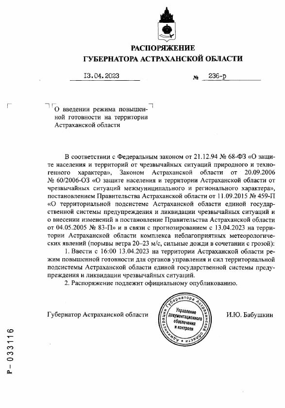 Распоряжение Губернатора Астраханской области