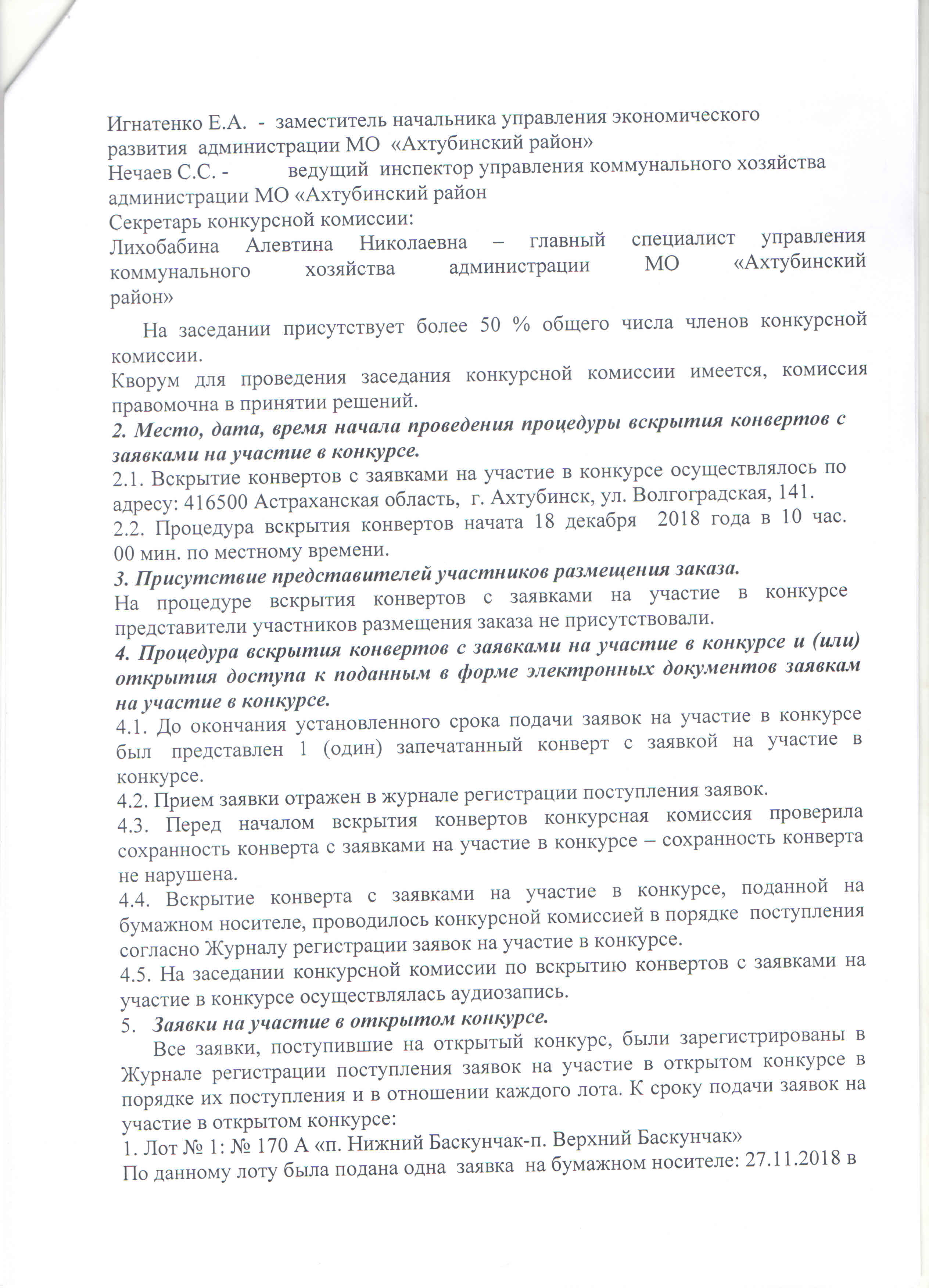 Протокол №1 вскрытия конвертов с заявками на участие в конкурсе и открытия доступа к поданным в форме электронных документов заявкам 2
