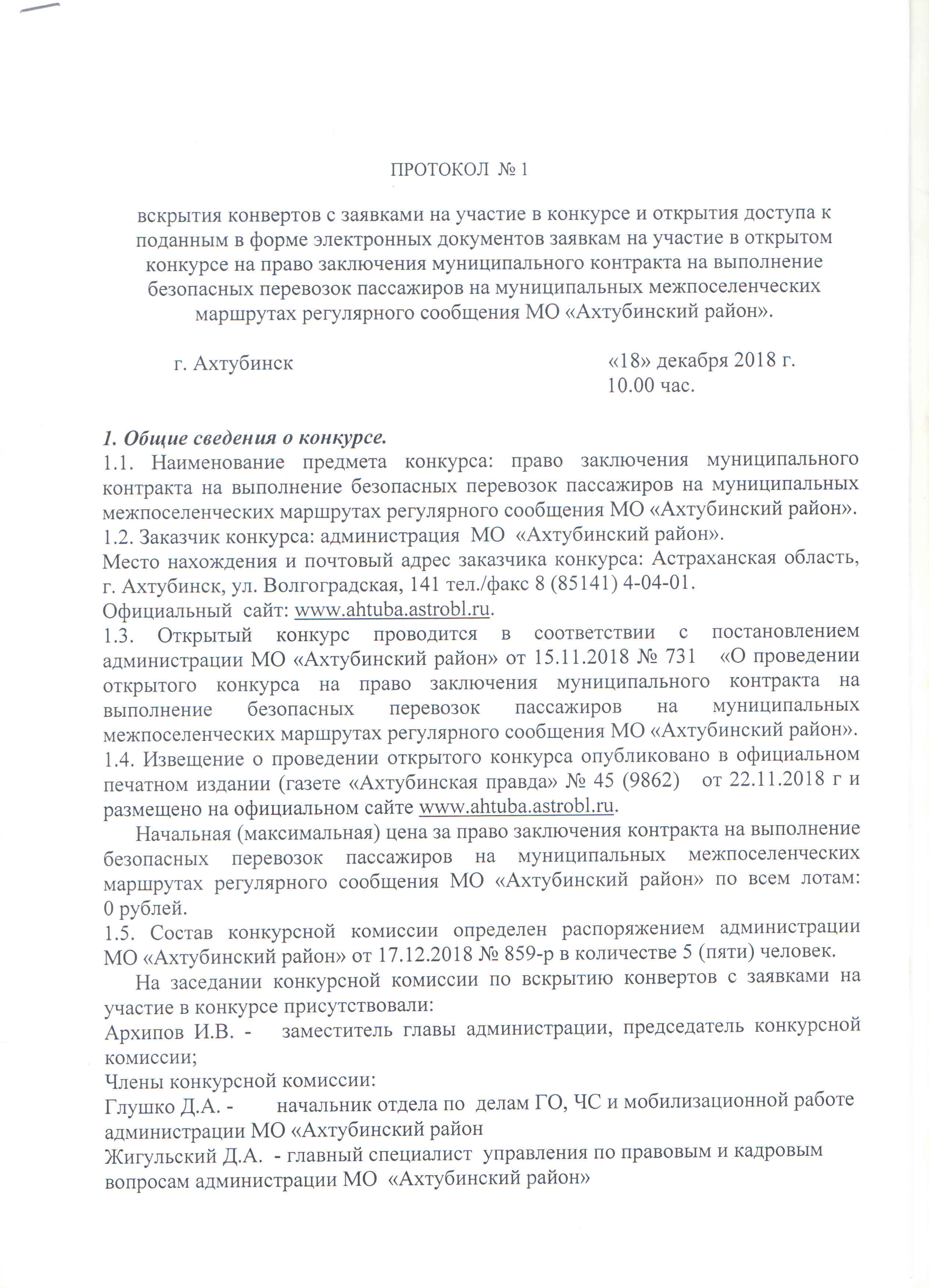 Протокол №1 вскрытия конвертов с заявками на участие в конкурсе и открытия доступа к поданным в форме электронных документов заявкам 1