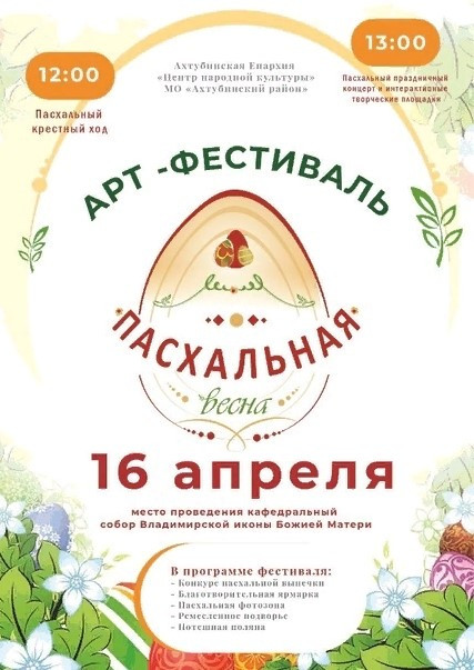 Приглашаем жителей и гостей города на арт-фестиваль “Пасхальная весна”, который состоится 16-го апреля 2023 года на территории кафедрального собора Владимирской иконы Божией Матери.