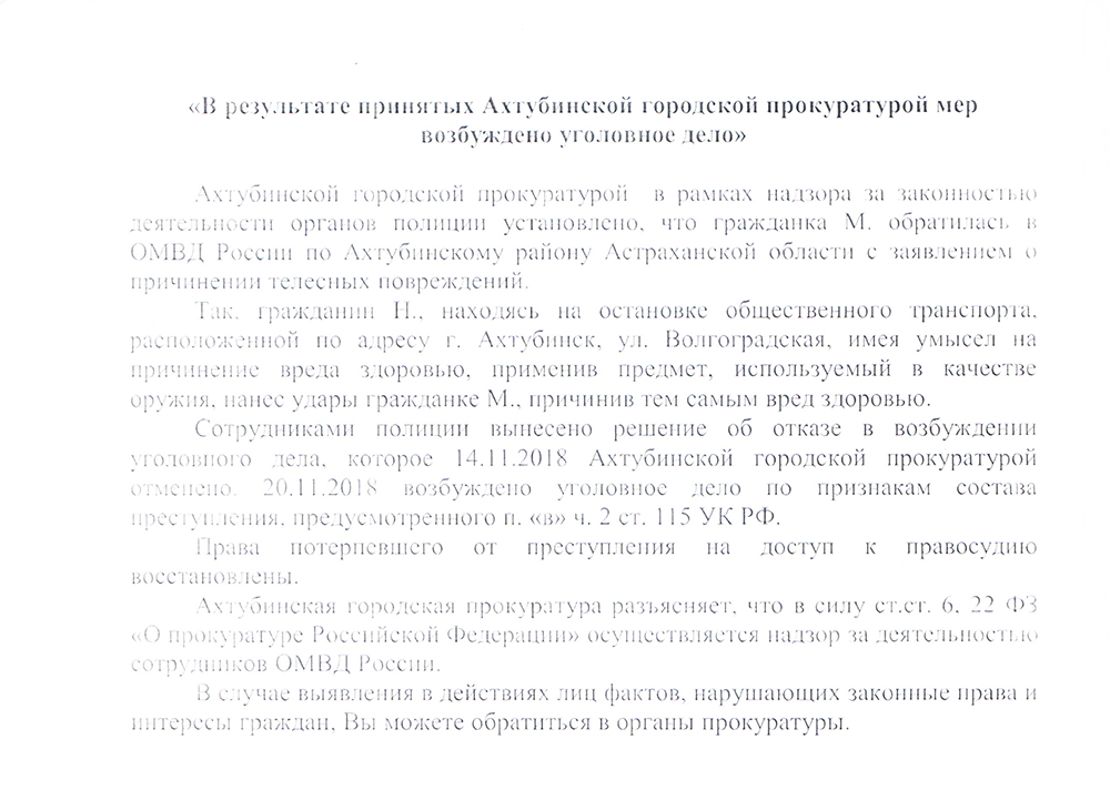 Прокуратура информирует